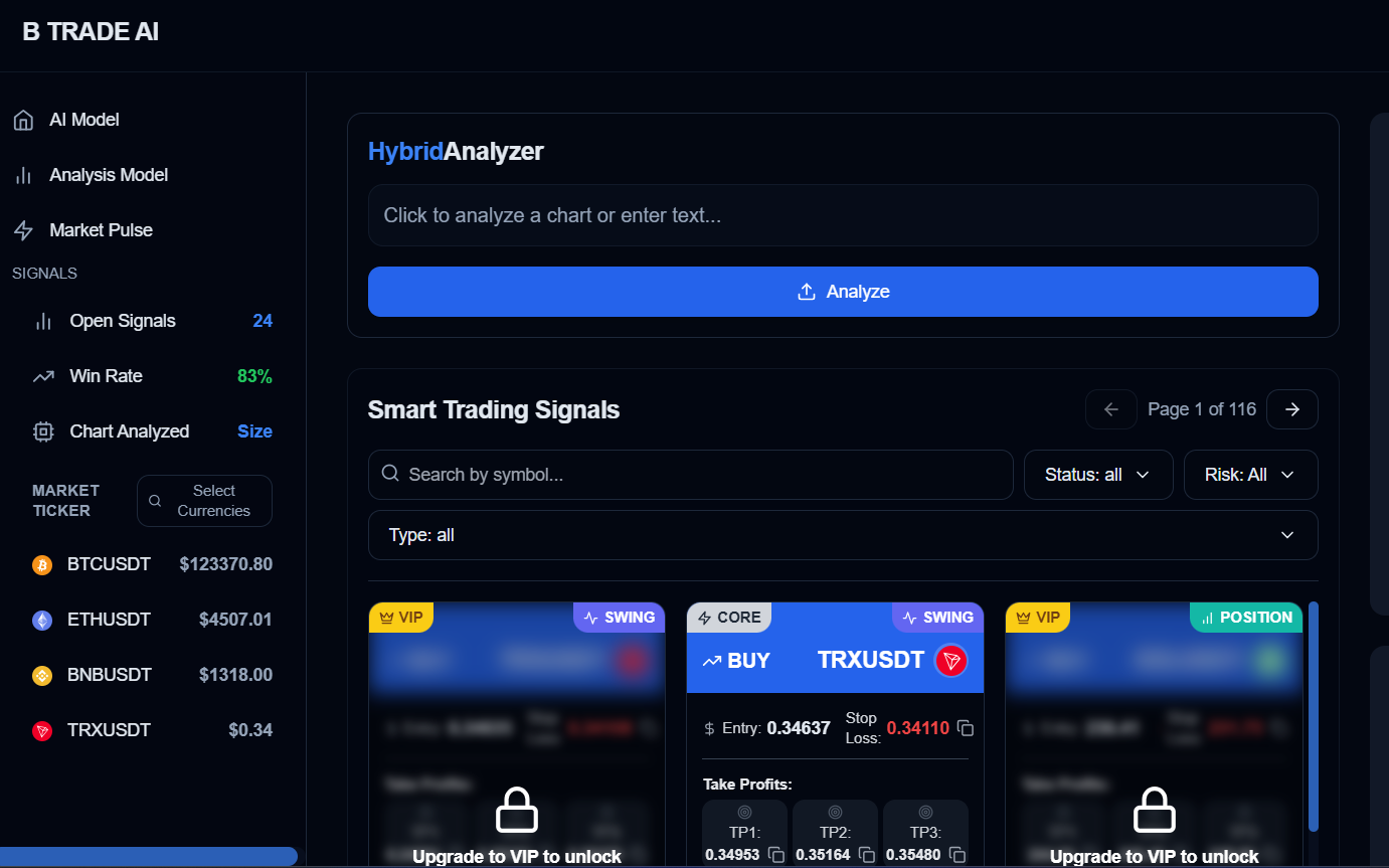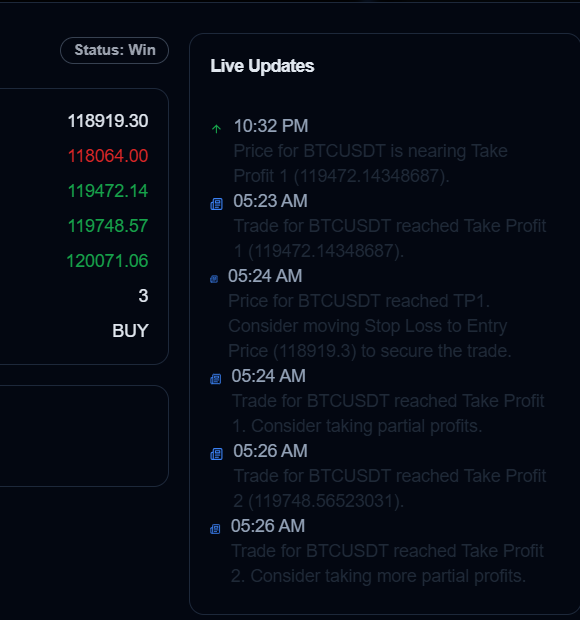 Up to 95% signal accuracy powered by advanced technical analysis and smart algorithms. Get alerts you can actually trust — data doesn’t lie.